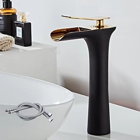 vattenfall handfat blandare hög, handfatskranar enkelgreppsdäck monterad med kall och varm slang