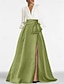 A-linje Svepsläp Kvälls klänningar Balklänning Formell klädsel Elegant Hög split Långärmad V-hals Formell Bröllopsgäst Satäng med Plisserat Slits