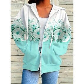 Kvinnors hooded sweatshirt jacka långärmad zip-up hoodie med ficka lättviktig casual mikroelastisk oversized blommig aktiv vintage sport drawstring frontficka blå fuchsia grön vår höst