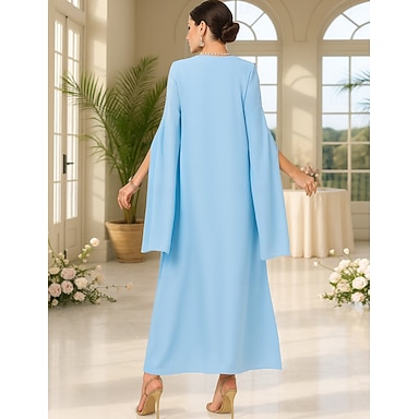 Hylsa Kolonn Ankel Längd Bal Klänning Festklänning Cocktailklänning Mor till bruden Klänning 3/4 Längd Ärmar V Neck Elegant Vintage Fest med Pärlor