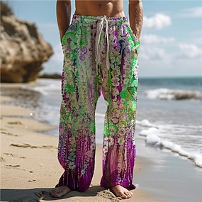 Herr Långbyxor Sommarbyxor Strandbyxor Snörning Elastisk midja 3D-utskrift Färgblock Geometriska mönster Grafiska tryck Komfort Ledigt Dagligen Helgdag Streetwear Hawaiisk Gul Ljusgrön