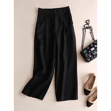 Dam Byxor av linne i bomull Brett skaft Byxor Mode Fullängd Slät Sidfickor Brett skaft Mateial som andas Bekväm Oelastisk Ledigt / vardag Svart Vit Kaki Vår & Höst