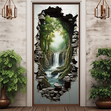 vattenfall grottdörr täcker väggmålning dekor dörr gobeläng dörr gardin dekoration bakgrund dörr banderoll avtagbar för ytterdörr inomhus utomhus hem rum dekoration bondgård dekoration tillbehör