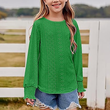 Barn Flickor T-shirt Ensfärgat Skola Långärmad Aktiv Bomull 7-13 år Vår Svart Vit Gul