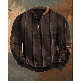 Herr Tröja Kvartströja med dragkedja Svart Brun Halv dragkedja Färgblock Halv dragkedja Mönster Ribbad Sport & Utomhus Dagligen Helgdag Polyester Vintage Streetwear Ledigt Höst vinter Kläder Pull