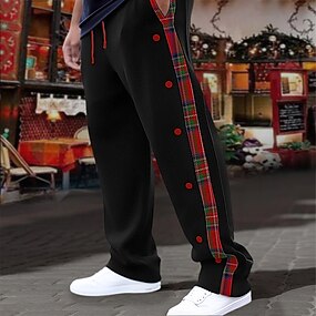 Herr Joggingbyxor Träningsbyxor med vida ben Långbyxor Casual byxor Träningsbyxor med raka ben Snörning Ficka Elastisk midja Rutig Komfort Mjuk Jul Dagligen Helgdag Mode Ledigt Svart Vit