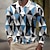 Herr Geometrisk Polo Långärmad Polotröjor Kavajslag Business Casual Fritids- Dagliga kläder 3D-utskrift Knappar Vår Höst Vinter Svart Vit Blå
