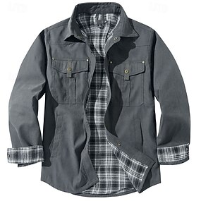 Herr Skjorta Arbetskläder skjortor Arbetsskjortor Knapp upp skjorta Cargo skjorta Kungsblå Khaki grön Armégrön Långärmad Rutig Kavajslag Semester Helgdag Ficka Kläder Mode Ledigt Bekväm