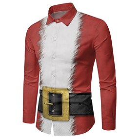 jul herr jul dräkt tryckta skjortor skjortor jultomten grafiska tryck fula turndown svart och rött vin vit+röd röd/vit röd 3d-tryck gata långärmade kläder med knapptryck