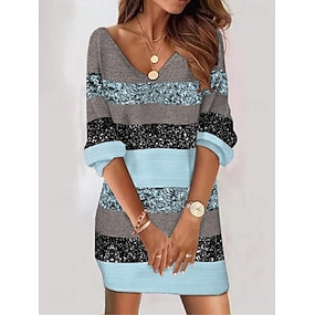 Dam Mini klänning T shirtklänning A linjeklänning Semester Ledigt Dagligen Datum Normal Nyans Grafisk Abstrakt Långärmad Rund hals Ljusgrön Blå Ljusgrå Grå Sommar Vår Höst Vinter