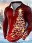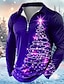 Jul Herr Julgran Pikétröjor med dragkedja Långärmad Polotröjor Kavajslag Ledigt Utomhus Festival outfit 3D-utskrift Vår Höst Vinter Rubinrött Blå Purpur