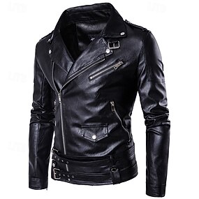Herr Imitationsläderjacka Bikerjacka Motorcykeljacka Semester Dagligen Vindtät Håller värmen Ficka Höst Vinter Slät Mode Klassisk Kavajslag Normal Svart Jacka