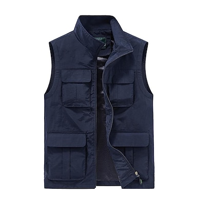 Herr Väst Gilet Fiskeväst Vandringsväst Dagligen Datum Semester Mode Ledigt Vår & sommar Ficka Polyester Bekväm Slät Dragkedja Hög krage Normal Svart Kaki Armégrön Mörkblå Väst