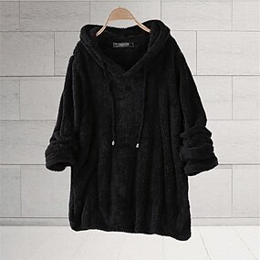 Dam Hoodie-tröja Slät Teddy Grundläggande Ledigt Långärmad Huva Vanliga toppar Dagligen Utekväll Helgen Snörning Svart Vit Rodnande Rosa Vin Blå Höst Vinter Höst vinter
