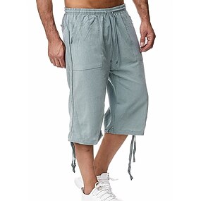 Herr Capribyxor Linne Shorts Sommarshorts Beach Shorts Ficka Elastisk midja Snörning Slät Mjuk Andningsfunktion Vadlängd Utomhussport Ledigt Svart Blå
