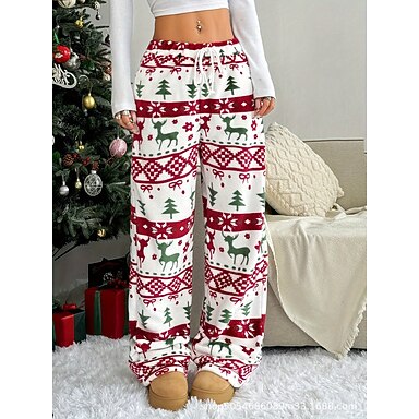 jul damer rak semester vintage etnisk stil full längd hög midja byxor fula grafiska älg julgran dragsko oelastisk utomhus semester fest vit vår höst vinter lös passform