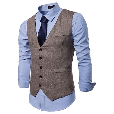 Herr Väst Bröllop Företag Formell kväll Kontor Vår Grundläggande Polyester Bekväm Solid färg Dubbelknäppt V-hals Smal Svart Kaki Grå Väst