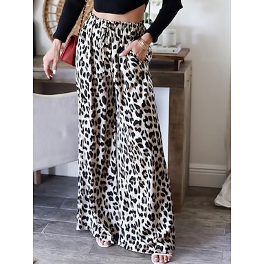 Dam Brett skaft Byxor Streetwear Ledigt Lång Hög midja Leopard Tryck Elastisk dragsko-design Mateial som andas Mjuk Microelastisk Semester Gata Dagliga kläder Gul Kaffe Grå Sommar Vår Höst Normal