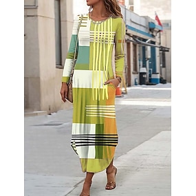 Dam Midiklänning Sheath Dress T shirtklänning Semester Ledigt Boho Helgdag Datum Normal Grafisk Geometrisk Abstrakt Långärmad Rund hals Gul Rodnande Rosa Blå Purpur Vår Höst Vinter