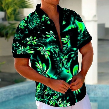 Herr Blommig Hawaii skjorta Aloha skjorta Kortärmad Hawaiisk Tillflykt Casual Ledigt Sommar Vår Nedvikt Knappen uppåt Ficka Svart Blå Purpur Grön