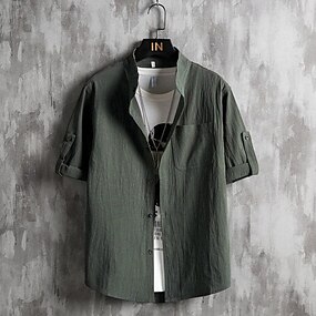 Herr Skjorta Tröja med kinesisk krage Mandarinkrageskjorta Sommarskjorta Casual skjorta Strandskjorta Svart Vit Grön 3/4-dels ärm Slät farfars krage Nedvikt Semester Helgdag Kläder Polyester Mode