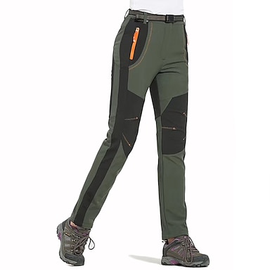 fleecefodrade byxor dam vattentäta vandringsbyxor svarta byxor softshell byxor vinter utomhus termisk varm vindtät lätt elastisk midja underdel armégrön vinröd orange camping