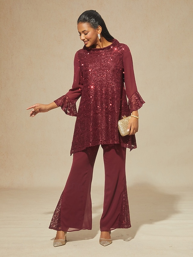 Dam Bell Botten Flared byxor Elegant Fullängd Medium Midja Spets Ficka Elastiskt midjeband Microelastisk Dagligen Bröllop Cocktailfest Vin Sommar Vår Höst Normal