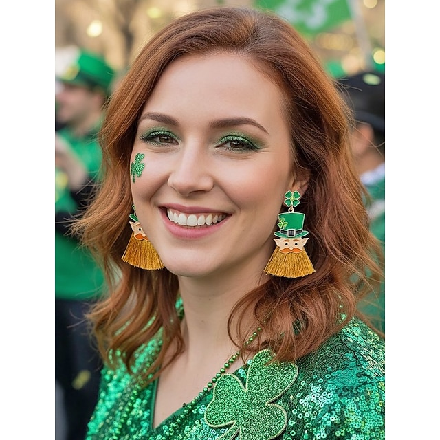 Örhängen med tofsmotiv för kvinnor, pysslinghatt och shamrockdesign, statement-örhängen i legering, roliga festliga irländska festsmycken för kvinnor
