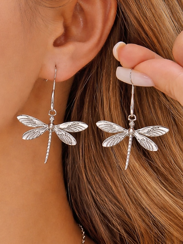 Bohemiska örhängen i legering med trollslända, lätta naturinspirerade droppsmycken för vardagligt bruk, semesterresor och sommarresor