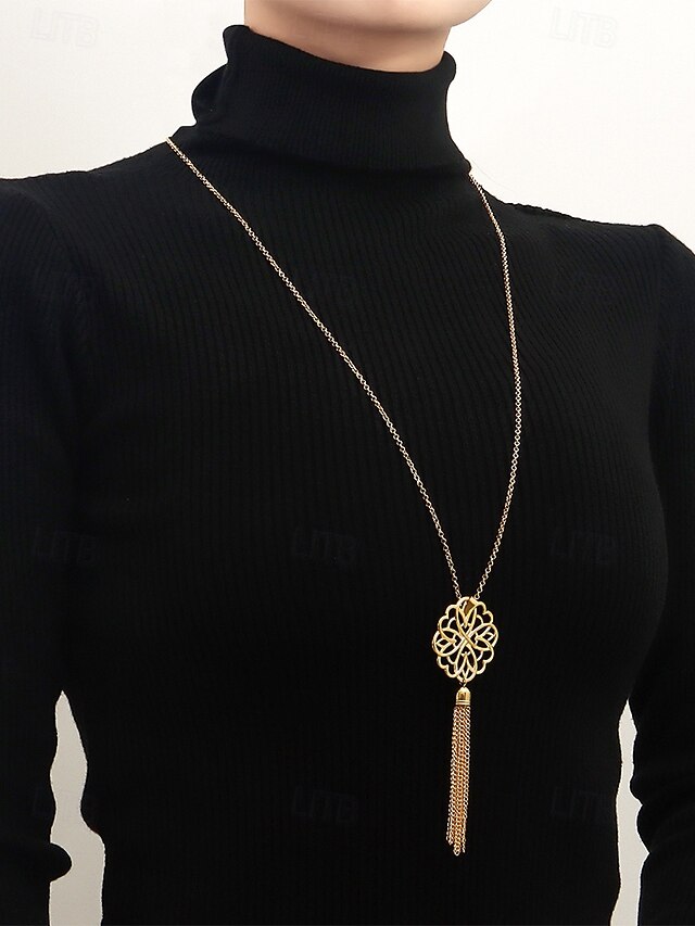 långa hängsmycken för kvinnor med intrikat blommönster och tofsaccent - eleganta statementsmycken för avslappnade och formella outfits