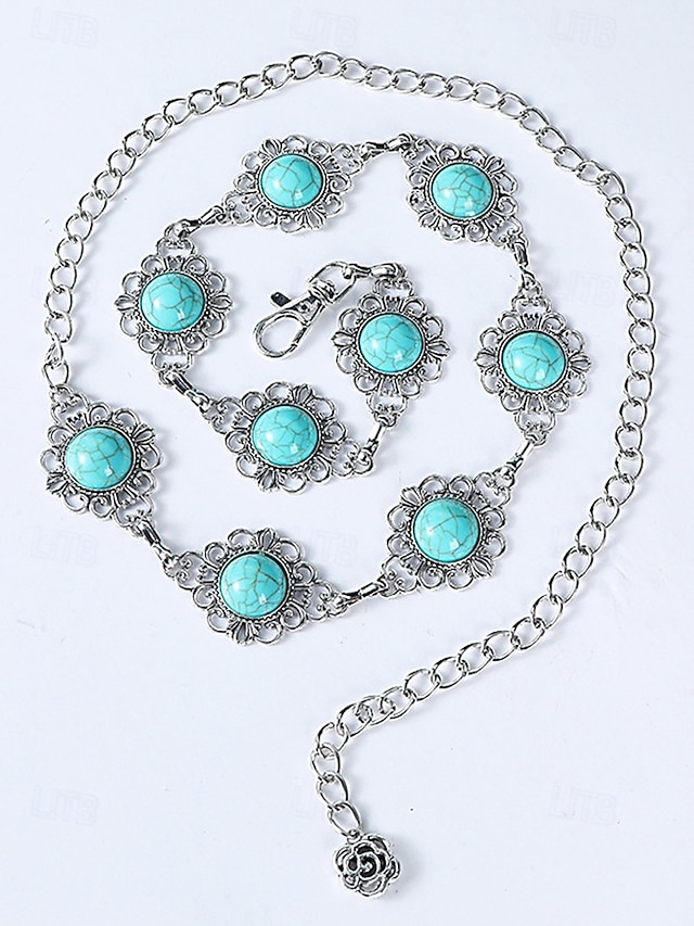 Dambälte med turkos conchokedje – justerbara västerländska midjesmycken i vintage boho-stil för klänningar, festivaler och fester