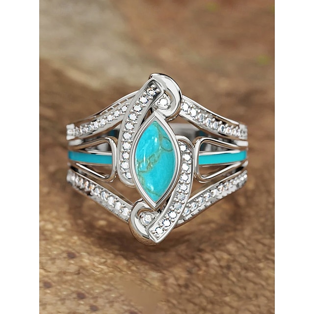 Bohemisk turkos ring för kvinnor – legering, flera storlekar, perfekt för vardagskläder och strandsemesterstil