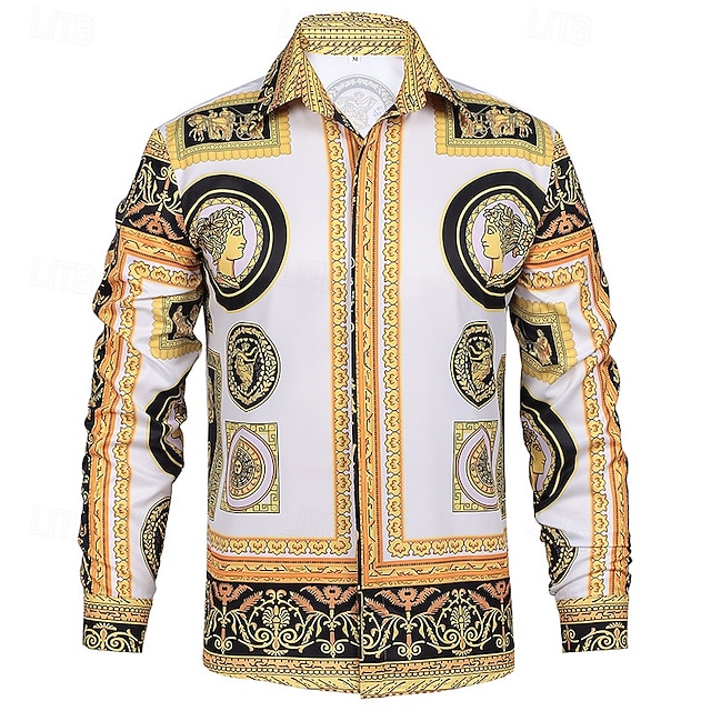 [Tyg] Konstruerat av högkvalitativ, mjuk polyester, ger dessa herrskjortor en sidenliknande känsla för maximal komfort och en lyxig känsla. Det lätta tyget säkerställer andningsförmåga, vilket gör det idealiskt för året runt-användning. [Passform] Den skräddarsydda slim-fit-designen betonar kroppens naturliga linjer och ger en slank och smickrande silhuett som passar för en mängd olika kroppstyper. [Design Höjdpunkter] Med en klassisk knäppning framtill och långa ärmar, är dessa skjortor prydda med intrikata barockinspirerade tryck. De retro mönstren, inklusive utsmyckade spiraler och medaljonger, fångar en vintage 1980-talsstil, vilket gör ett djärvt stiluttalande. [Tillfällen] Perfekta för en mängd olika sammanhang, från avslappnade dagliga utflykter till temafester som maskerad eller möhippor. Dessa skjortor tillför en touch av elegans och charm till varje sammankomst, vilket gör dem till ett mångsidigt tillskott i varje garderob. [Storleksområde] Finns i storlekarna S, M, L, XL och XXL, vilket säkerställer en passform för ett brett spektrum av kroppstyper och preferenser.