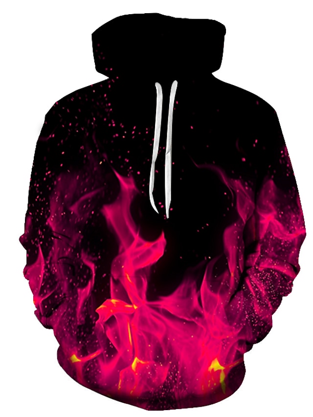 Herr Grafisk Helveteseldslågor Låga Huvtröja Huvtröjor Tröja party Ledigt Långärmad Huva Nattklubb Helgen Blå Fuchsia Orange Grön Designer S M L XL XXL 3XL