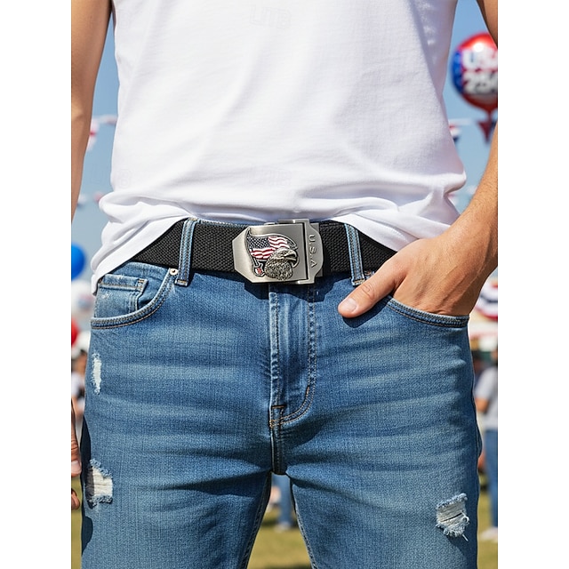 Justerbart herrbälte i polyester med spänne med örn och amerikansk flagga, flerfärgat patriotiskt midjebälte för utomhusbruk för USA:s 250-årsjubileum, självständighetsdagen, resor, semester och fritidskläder