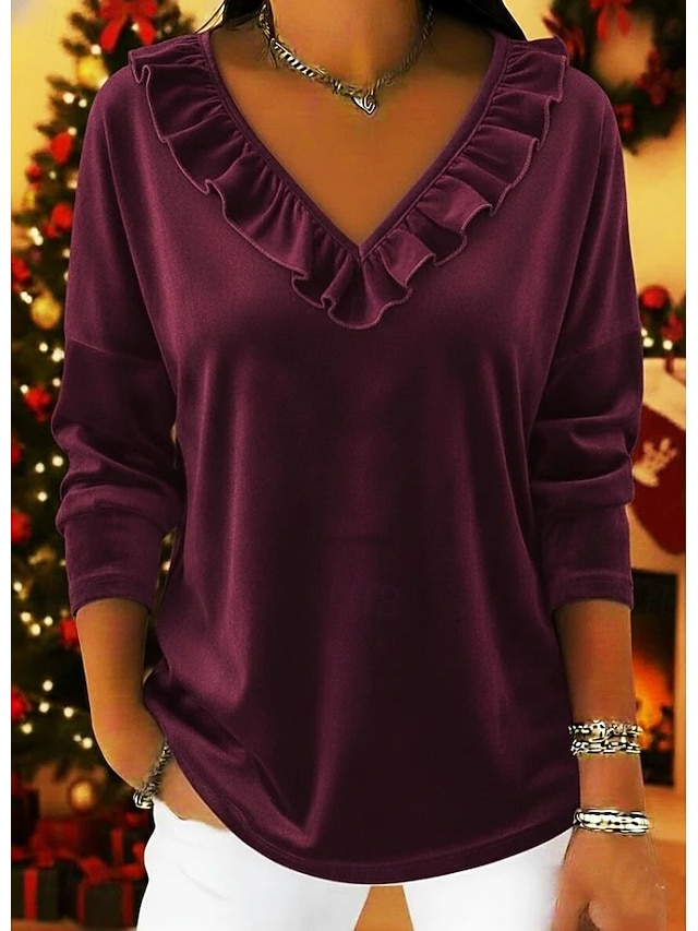 Material:Sammet,Topptyp:Sammet,Kön:Dam,Stil:Stylish,Grundläggande,Ledigt,Elegant,Passform:Normal,Festival:Jul,Halslinje:V-hals,Ärmlängd:Långärmad,Elasticitet:Oelastisk,Ta hand om mig:Maskintvätt,Längd överdel:Vanliga toppar,Mönster:Ensfärgat,Slät,Årstid:Vinter,