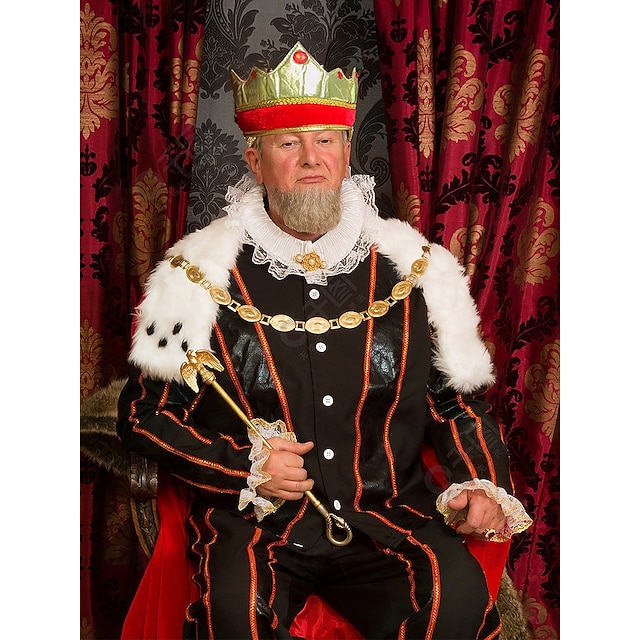 Menns polyester tyg kungakrona – guld- och röd design perfekt för karneval och maskeradfester