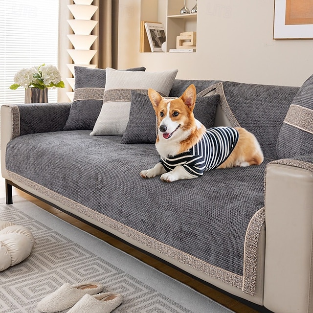 Sofföverdrag för hund året runt modernt tweedvävt chenille halkfritt sofföverdrag husdjursvänligt