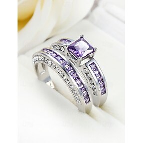 Damringset, koppar med kubisk zirkonia, flerfärgade, eleganta matchande ringar för bröllop, fester och formella evenemang, perfekta brud- eller kvällssmycken