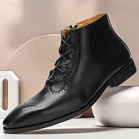 bruna ankelstövlar med snörning för män med brogue-detaljer - klänningsstövlar i premiumkoskinn för högtids- och affärskläder