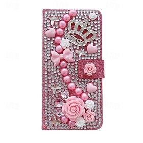 | telefon fodral Till Samsung Galaxy S26 Ultra Plus S25 S24 S23 S22 S21 Ultra Plus S20 A25 A15 A14 Plånboksfodral för kvinnor flicka med stativ Magnet Bling Glitter Shiny Blomma Blommor TPU | ||