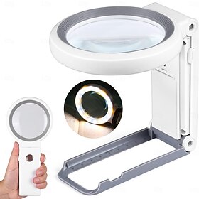 | 30x 10x förstoringsglas med ljus och stativ vikbart handhållet förstoringsglas 18 led upplyst upplyst förstoringsglas för makuladegeneration seniorer som läser nära arbete | ||