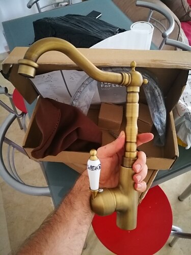 diskbänksblandare, 360 vridbart enkelhandtag fjäderkranar köksdäck monterad, ett hål mässing diskbänksblandare vattenkärl kranar retro vintage