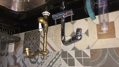 köksblandare, två handtag ett hål antik mässing / galvaniserad / målad finish standard pip centerset antika kökskranar