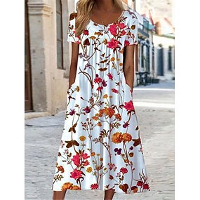 Dam Vardagsklänning A linjeklänning Sommarklänning Streetwear A-linje Semester Gata Helgdag Lös passning Kortärmad Rund hals Vit Gul Rubinrött Blå Sommar