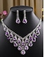 Smyckeset med rosa zirkoniastenar för kvinnor - glittrande hjärthalsband och hängande örhängen för fest, bröllop eller kvällsevenemang
