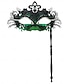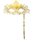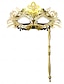 Maskeradmask med strass och handtag för kvinnor - elegant guld &röd handhållen kostymmask för nyårsfester, baler &formella dansevenemang