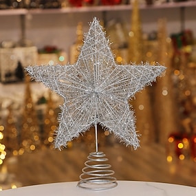 julgranstoppare stjärna LED-ljus jul, glitterjärn femuddig stjärndekoration, hängande grandekoration, festlig julbordsdekoration för heminredning