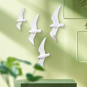 4st vitt harts flygande fågelprydnader, 3d väggdekorationer för hem, familj, hotell, inomhus varm fågelväggdekor, dekorativa väggdekorationer