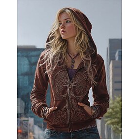 Dam Zip Up hoodies Blommig Grafisk Rutig Mode Västra Retro Långärmad Huva Vanliga toppar Gata Vardag Dragkedja Ficka Mönster Gul Rubinrött Purpur Grön Vår Höst Vinter
